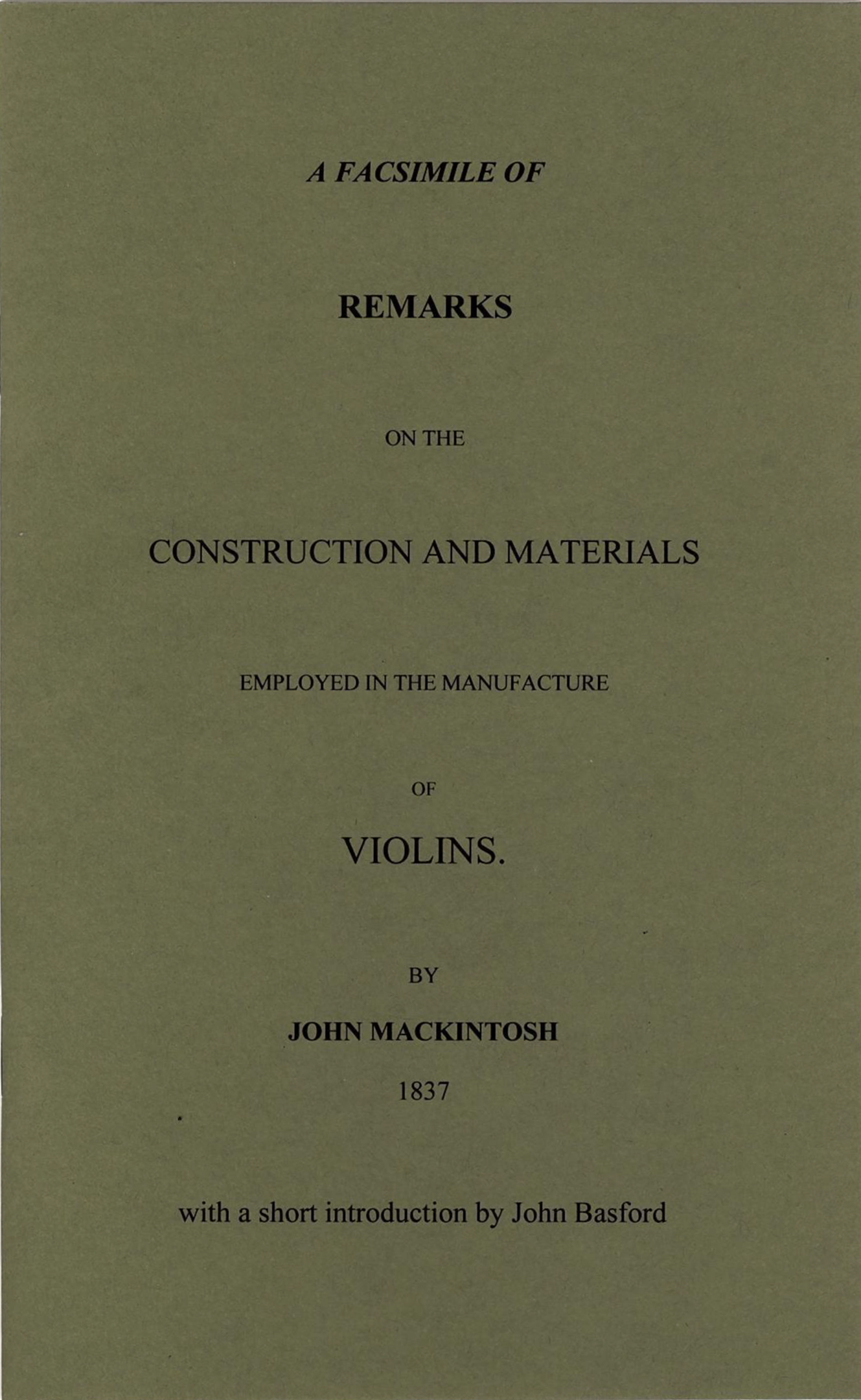 A Facsimile of Remarks on the Construction and Materials Employed in the Manufacture of Violins