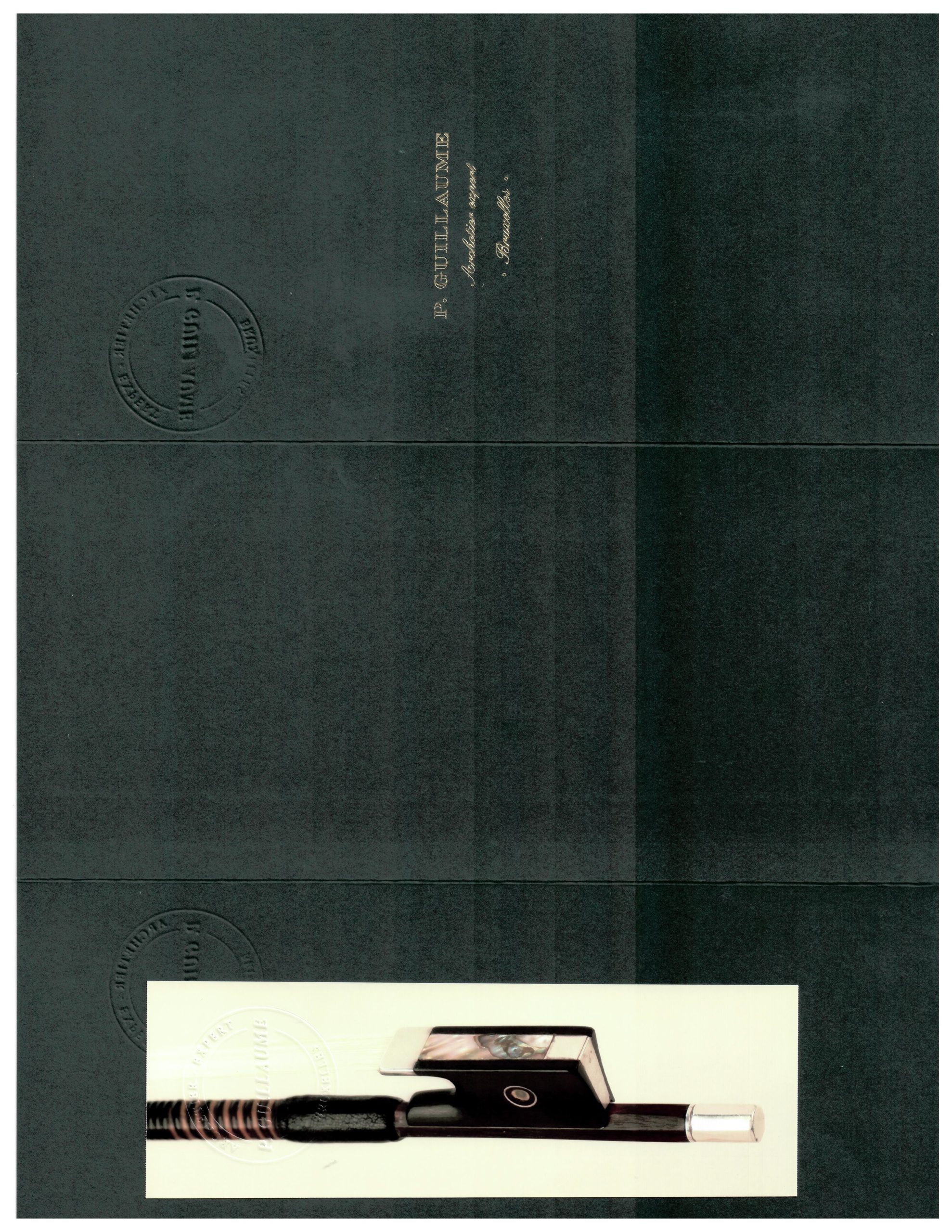 Certificate from Pierre Guillaume, Brussels: “High quality specimen by the most illustrious master bow maker of the 20th century…”